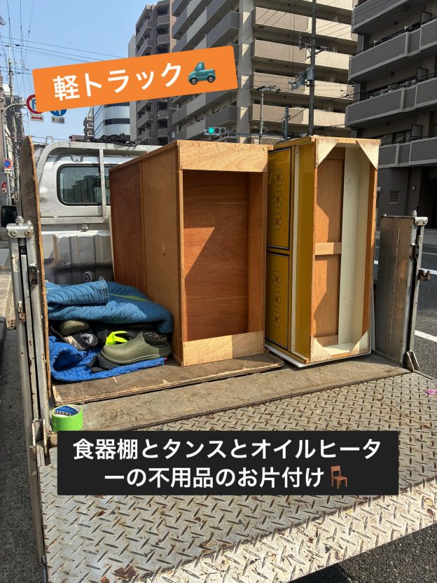 今回は、【大阪市西区】へタンス、食器棚、オイルヒーターの不用品を引き上げてきました